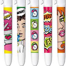 Cette série de cinq stylos incarne l’esprit audacieux et l’esthétique dynamique du mouvement artistique emblématique du Pop Art.